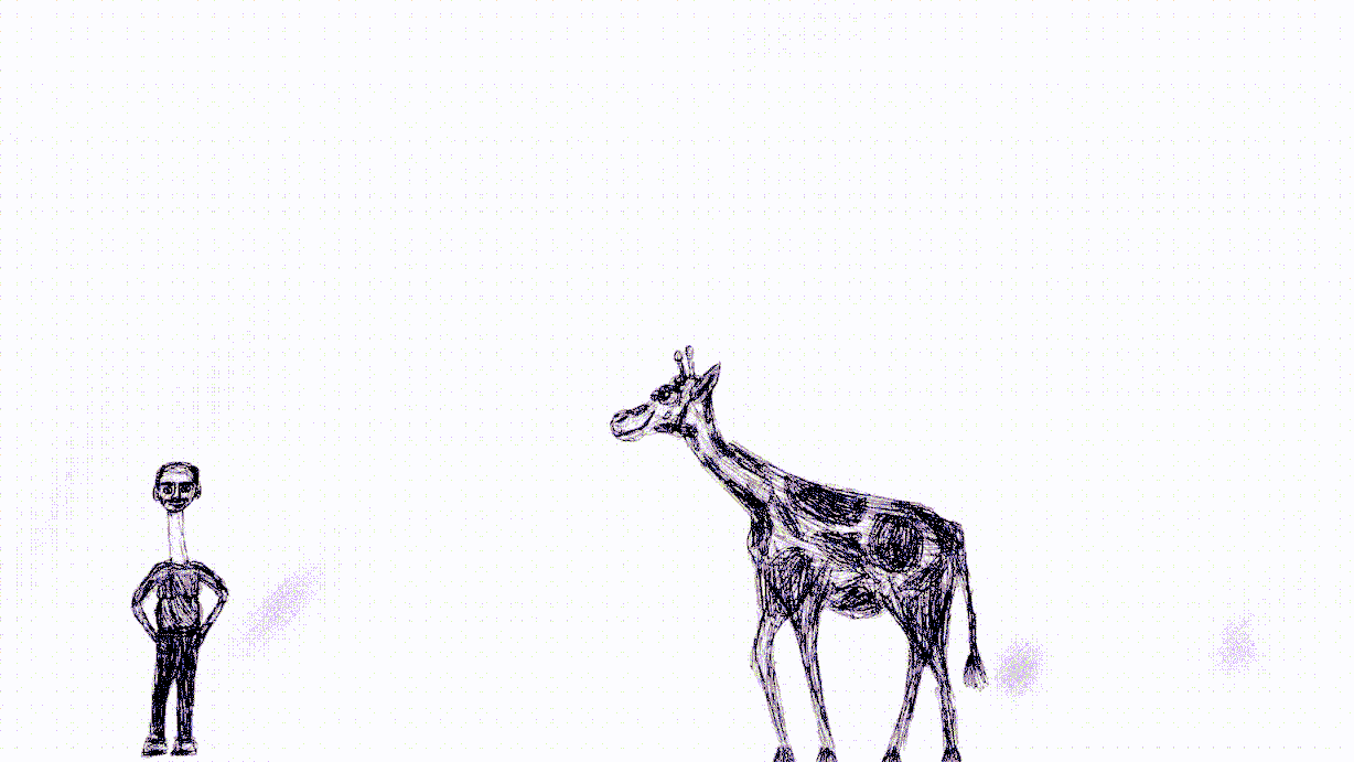A giraffe and a man swap necks and their necks start dancing.
